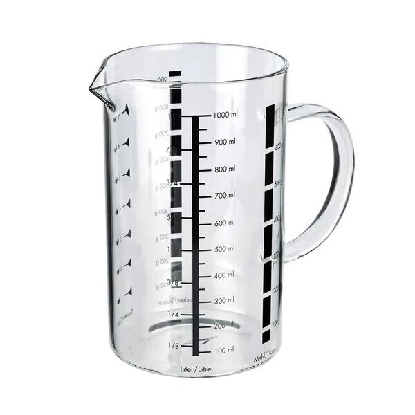 Der transparente Messbecher von Küchenprofi erleichtert Ihnen die Schritte zum perfekten Gericht, indem er Ihnen mit einem guten Überblick und leicht lesbaren Messskalen zur Verfügung steht. So wird das Abmessen Ihrer Zutaten ruckzuck erledigt und das Kochen kann beginnen.