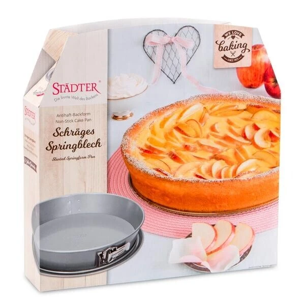 Mit dem Springblech aus der Serie We love baking von Städter zaubern Sie leckere Tartes oder Kuchen, der mit besonders viel Creme oder Obst verfeinert wird. Die antihaftbeschichtete Wähenform begeistert mit ihrem großen Durchmesser und eignet sich für alle Backkreationen, deren Rand mit Mürbeteig befestigt wird.